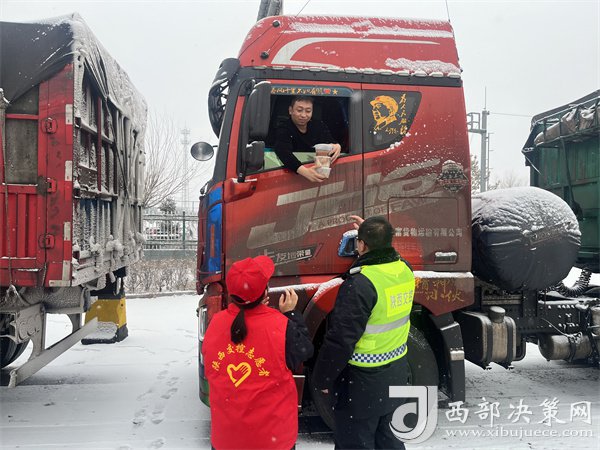 在各收費(fèi)站,工作人員也熱火朝天、行動(dòng)起來,大家齊力清除廣場(chǎng)、車道積雪,做好交通管制解釋。志愿者們配足熱水、常用藥品和簡(jiǎn)易維修工具等,為過往司乘開展出行引導(dǎo)和便民服務(wù),幫助司機(jī)解決困難。同時(shí),為滯留的司乘朋友提供食物和休息,讓他們?cè)诤涠粘陨蠠狎v騰的飯、感受到來自榆靖人的溫度。