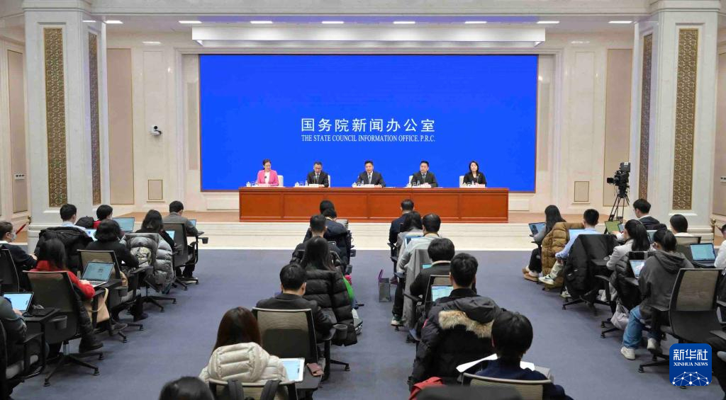 2月6日,國務(wù)院新聞辦公室在北京舉行新聞發(fā)布會,商務(wù)部副部長盛秋平、商務(wù)部市場運行和消費促進司司長徐興鋒、文化和旅游部產(chǎn)業(yè)發(fā)展司司長繆沐陽、國家體育總局體育經(jīng)濟司負責人王小朋介紹保障春節(jié)市場供應(yīng)、促進節(jié)日消費有關(guān)情況,并答記者問。新華社記者 才揚 攝