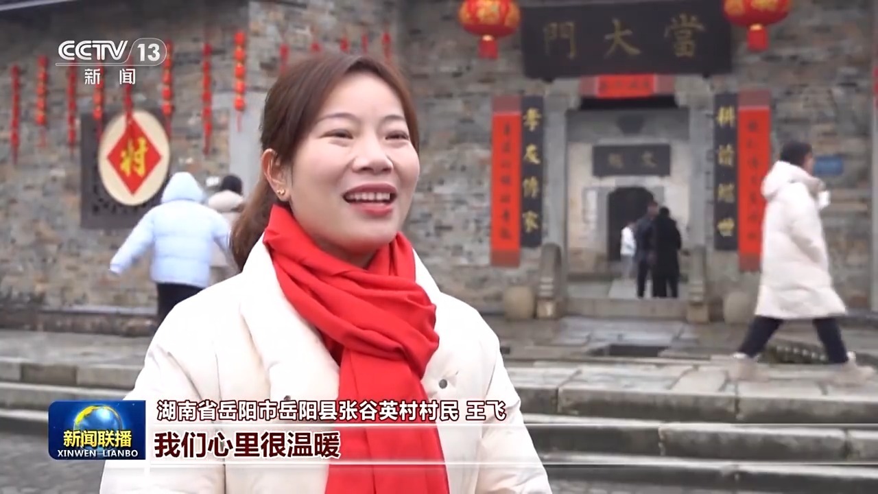 湖南省岳陽市岳陽縣張谷英村村民 王飛:總書記關(guān)心我們基層群眾年過得好不好,我們心里很溫暖,現(xiàn)在游客都愿意來,感受我們村的古韻和文化。對于來年的日子,我們大家都充滿信心,把日子過得更好。