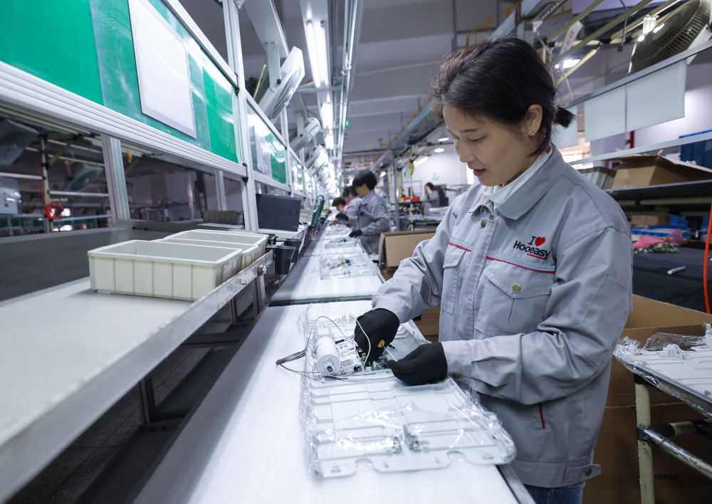2月19日,工人在位于浙江金華市金義新區(qū)的浙江好易點科技股份有限公司車間內(nèi)組裝智能晾衣機。據(jù)介紹,該公司已形成年產(chǎn)智能晾衣機100萬套生產(chǎn)能力。新華社記者 徐昱 攝