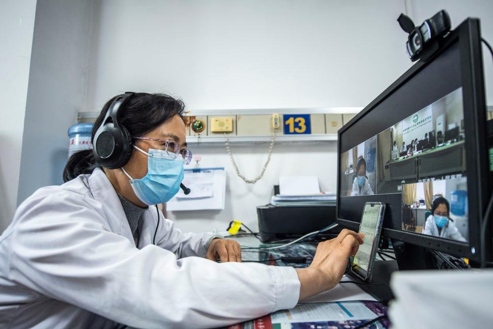 △2022年3月30日,貴州省人民醫(yī)院專家在和畢節(jié)市第一人民醫(yī)院醫(yī)生進行遠程醫(yī)療會診。