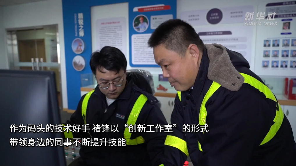 作為碼頭的技術(shù)好手,褚鋒以“創(chuàng)新工作室”形式,帶領(lǐng)身邊的同事不斷提升技能。